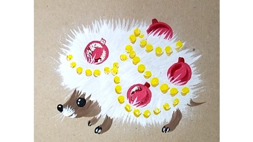🦔🎄🦔Новогодний ёжик,нарисованный гуашью при помощи зубной щетки.🦔❄️🦔