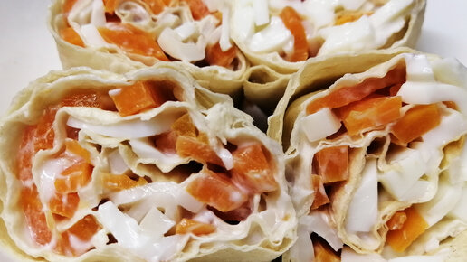 РУЛЕТЫ ИЗ ЛАВАША с кальмарами и морковью