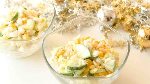 Простой салатик на праздник или на каждый день. Салат из пекинской капусты, огурца, яйца и кукурузы.