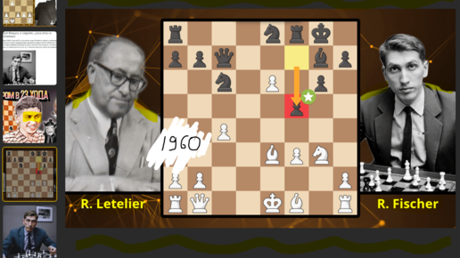 Ослепительная финальная жертва черного ферзя Бобби Фишера - страшное обыгрывание Рене Летелье в Лейпциге, 1960 в "индийской защите", 0-1
