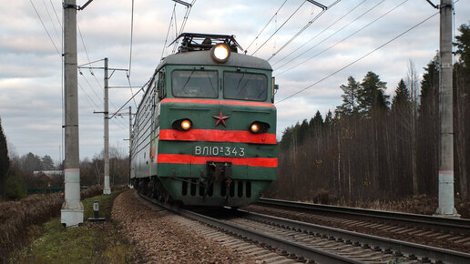 Встреча грузовых поездов под электровозами ВЛ10У-343 и ВЛ10К-1093. Перегон Кубинка-1-Тучково Московской железной дороги. Октябрь 2019 года.