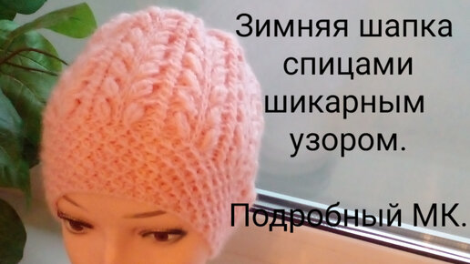 Зимняя шапка спицами шикарным узором. Подробный МК.