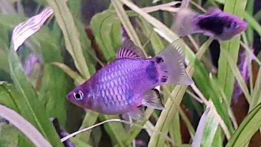 Красавица дисковая пецилия Микки Маус в розовом свете аквариума