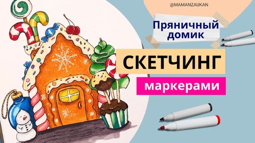 Как нарисовать Пряничный домик маркерами. Спидпейнт