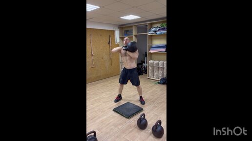 Тренировка с гирями. Толчок гирь 24 кг. Взятие гири на грудь 72 кг. Рывок гири 24 кг. Подтягивания. Отжимания в стойке на руках. Пресс.