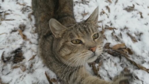 Теплая встреча с красивой уличной, но не совсем бездомной кошкой.