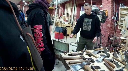 Артём Владимирович (Artomon) на фабрике Петроградъ рассказывает о видах топоров. (Фрагмент лекции) За видео спасибо Николаю (Semi)