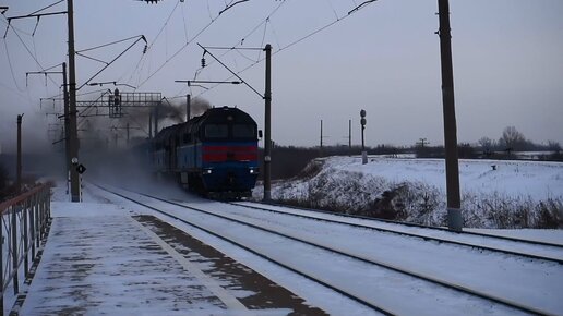 Тепловоз 2ТЭ116У-0046 с контейнерным поездом.