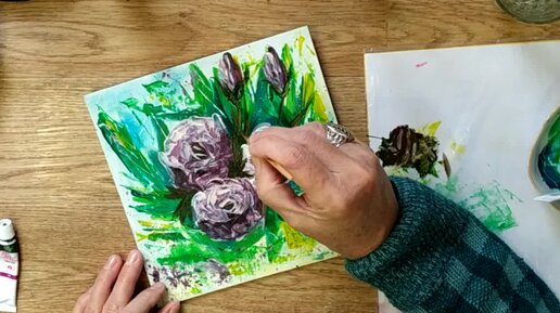 Цветы Как нарисовать розы акрилом гуашью