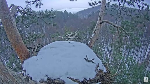 19.12.2022. Утренние гости гнезда орлана: большой пёстрый дятел и пищуха