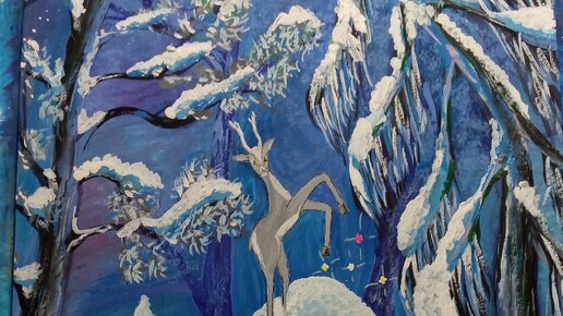 Вторая зимняя картина по П.П. Бажову. 😊❄ Процесс рисования поэтапно: набросок - фон - прорисовка. Новый герой — киска мурыска.