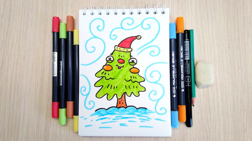 Как нарисовать ёлочку маркерами. Показываю процесс рисования