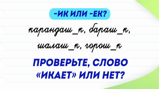 САМЫЙ необычный способ проверить написание суффикса -ИК и -ЕК | Слово «икает» или нет?