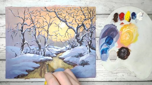 Как легко нарисовать зимний закат с помощью 5 цветов🎨❄️☀️ Пошаговое видео🎥