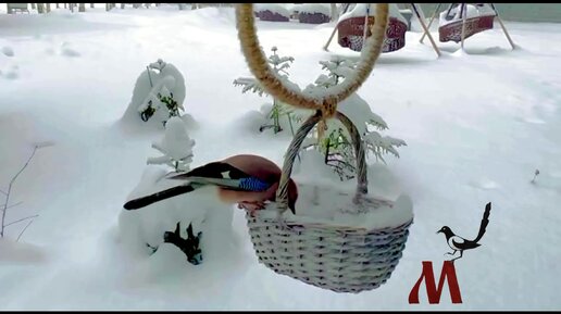 Удивительное чудо прилетело сегодня в кормушку. Сойка.