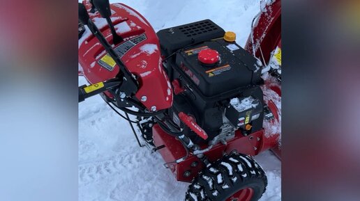 Снегоуборщик Elitech 12э. Запуск и уборка снега.