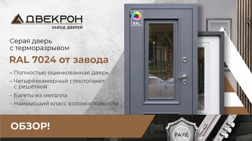 Серая уличная дверь с терморазрывом RAL 7024 от завода со стеклом. Полностью оцинкованная дверь. Максимальное утепление. Обзор!