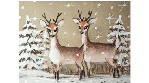 🦌🌲🦌Олешки. Рисунок гуашью и карандашами на крафтовой бумаге. 🦌❄🌲🦌