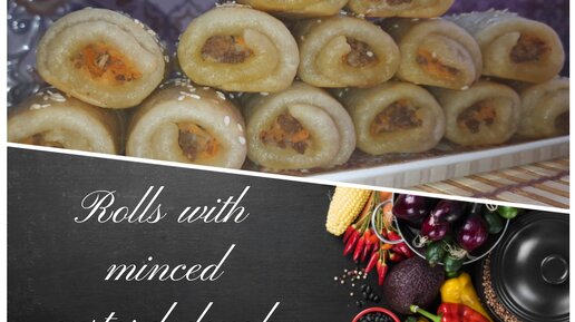 Рулетики с фаршем из заварного теста, получаются мягкими, нежными, напоминают по вкусу блинчики с мясом