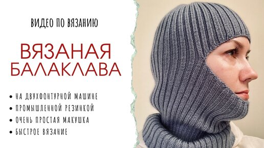 Вязаная балаклава промышленной резинкой на вязальной машине. Быстро.