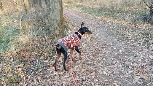 Герда, утро, парк. Щенок Добермана 6 месяцев