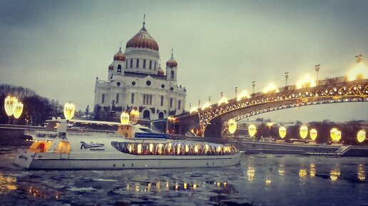 Храм Христа Спасителя. Патриарший мост. Москва-река. Берсеневская набережная. Декабрь 2022