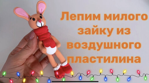 Лепим символ года из воздушного пластилина. Милый заяц в уютном шарфе. #воздушныйпластилин