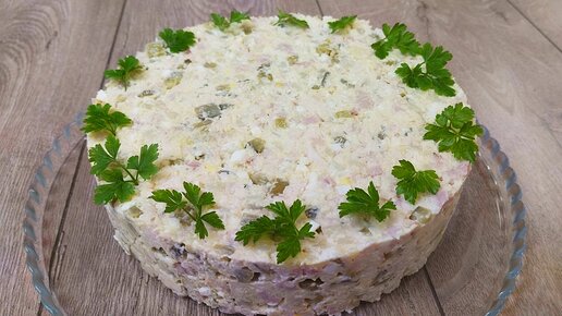 Необыкновенно вкусный рецепт салата. Отличный выбор для праздничного стола с любимыми копчёностями.