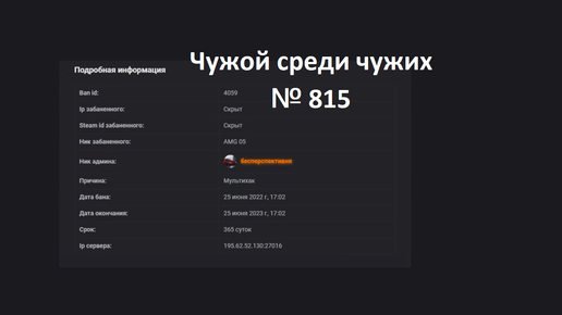 Чужой среди чужих [2022 Год.] № 815.[CSDM] Пушки + Плюшки [CSDM]. Ник забаненного: AMG 05.