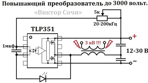 3000 вольт на оптопаре и трансформаторе, схема и тесты, для различных самоделок, TLP350 Toshiba.