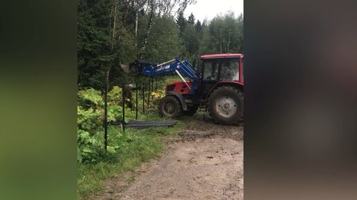 Как быстро огородить забором и сделать въезд. Кран и трактор в помощь