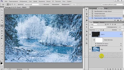 Как создать снег и наложить его на фото стандартным фильтром фотошопа