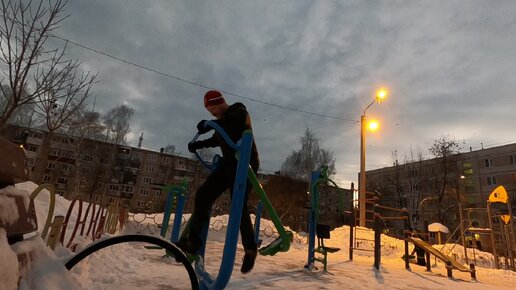 Утренняя зарядка, в темнотках. Бананы и мандарины так и не купил