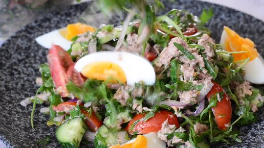 Лучший САЛАТ С ТУНЦОМ БЕЗ МАЙОНЕЗА. Легкий и полезный рецепт салата за 5 минут! Рецепт САЛАТА без вреда для фигуры