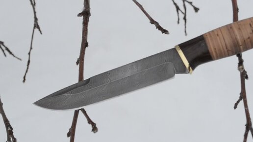 Нож Скорпион сталь Дамаск, рукоять береста+венге