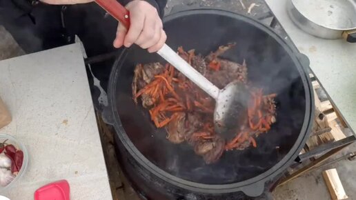 Плов из утки в казане на костре. Самый простой рецепт.Вкуснее не бывает.Мой первый опыт.