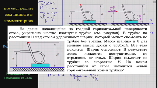 Физика На доске, находящейся на гладкой горизонтальной поверхности стола, укреплена жестко изогнутая трубка (см. рисунок). В трубке на