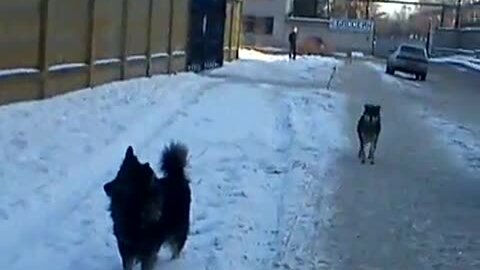 Ворона орёт на собаку