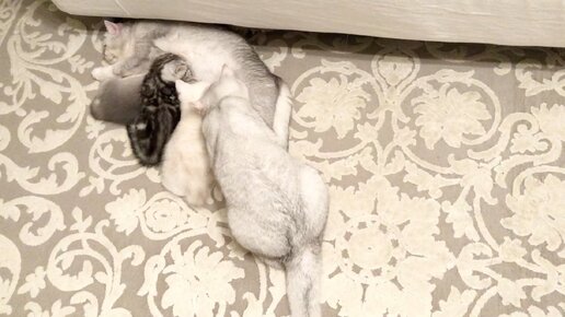 Кошка Кристалл просит молочка у своей приёмной матери кошки Кайли.