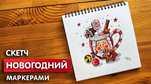 Рисунок скетч маркерами "Новогодняя кружка" для скетчбука | Срисовка картинки для начинающих
