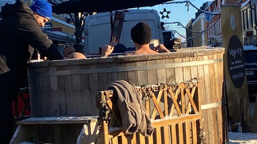 Шведские традиции: сидеть в бочке с горячей водой на морозе, пить пиво, бочку могут привезти к ресторану, там можно сделать заказ.
