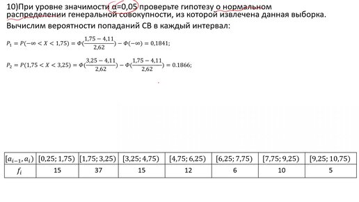 Проверка гипотезы о нормальном распределении генеральной совокупности при заданном уровне значимости по критерию Пирсона (РЗ 9.10)