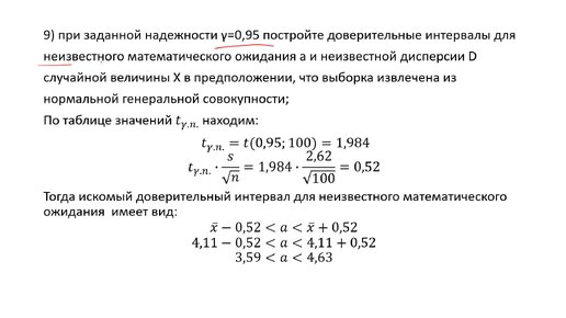 Построение доверительных интервалов для неизвестного математического ожидания и неизвестной дисперсии при заданной надежности (РЗ 9.9)