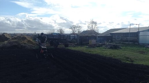 Посадка озимого чеснока под окучн к мотоблоком.