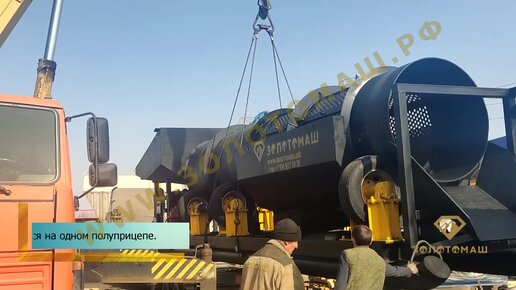 Погрузка скруббер-бутары ЗолотоМаш СБ-50Д на полуприцеп. Отгрузка промприбора в Республику Бурятия.