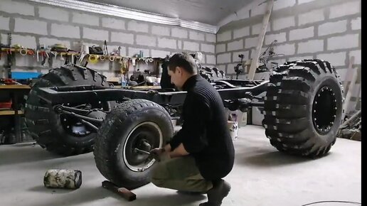 Вездеход на раме уаз, ставлю самодельные колёса.