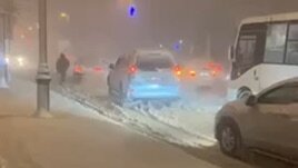 В центре Владивостока автобус с пассажирами застрял в снегу!