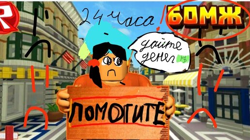 24 часа стала бомжом в роблокс!?😲 Как такое возможно?🤦 //ROBLOX//🍉❤️🧡💛🍉