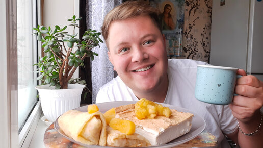 МУКБАНГ 😋 ЗАПЕКАНКА И БЛИНЧИКИ С ЯБЛОКАМИ 💥 МНЕ ОЧЕНЬ ВКУСНО