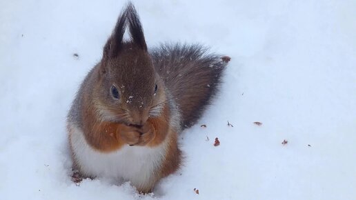 Согрели орешками пушистого бельчонка ранним морозным утром! Петргоф.